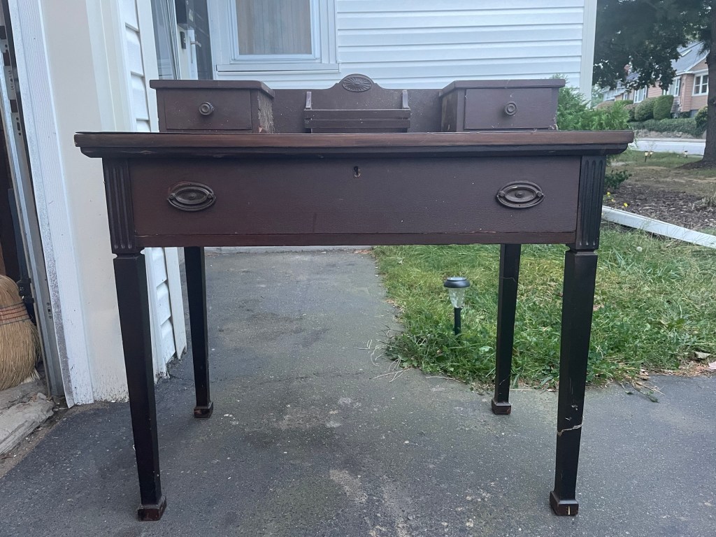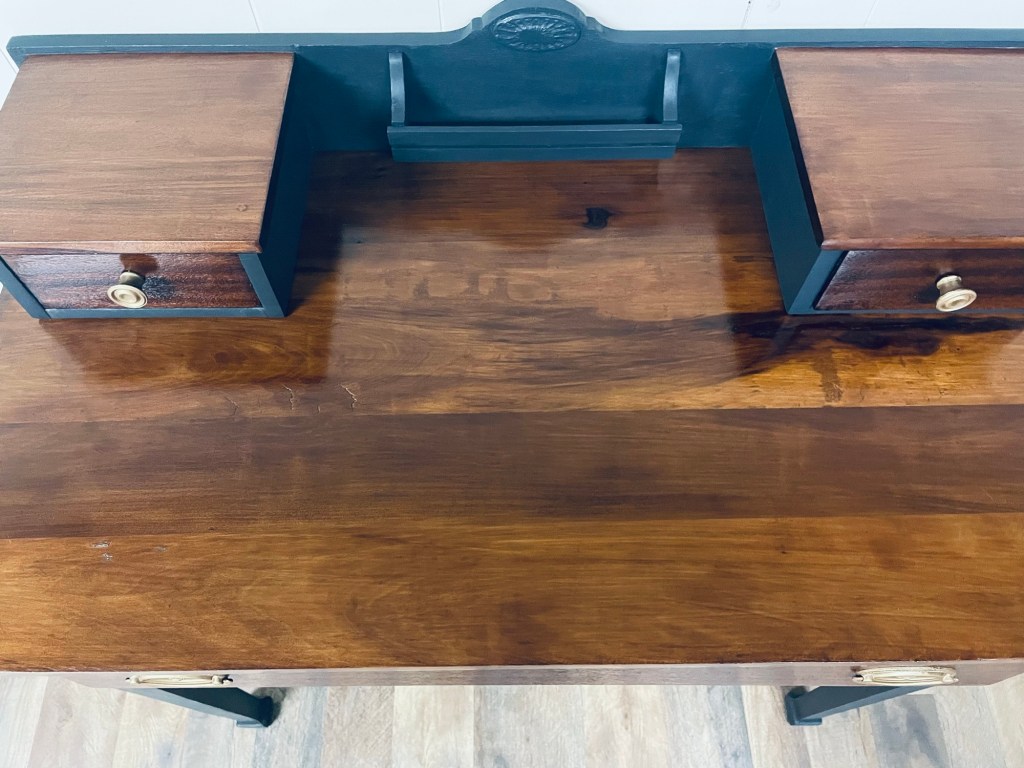 For my recent find, the desk I worked on was estimated to have been made around 1920-1930. I was not able to find a lot of details on its origin story like my last post; Art Deco Dry Bar, but from what I can tell it’s made from mahogany and it mimics Hepplewhite and Sheraton styles.